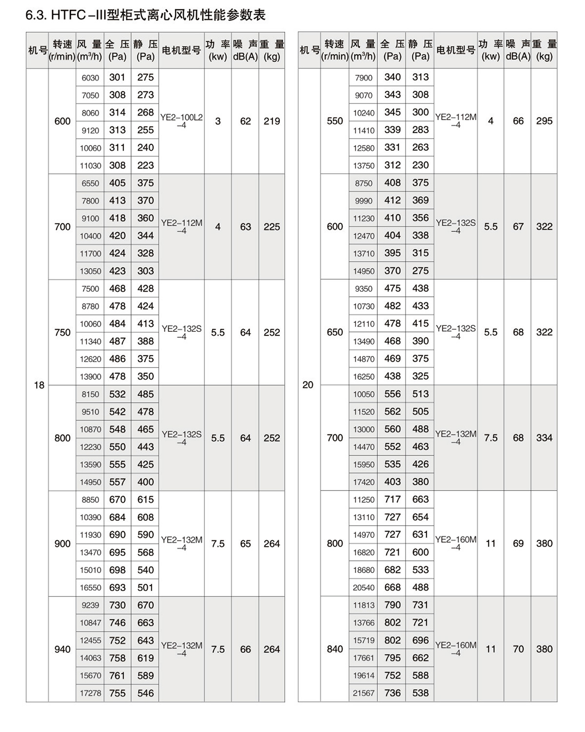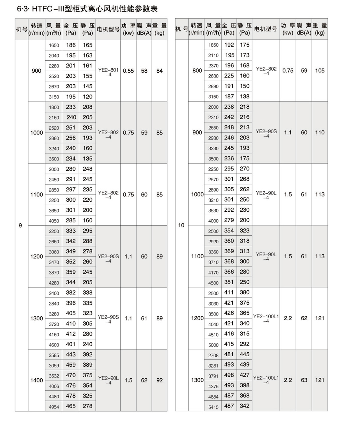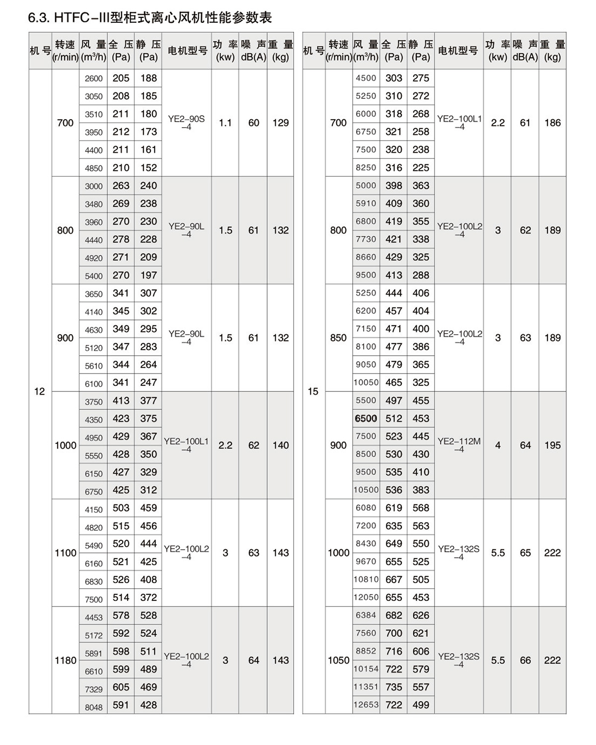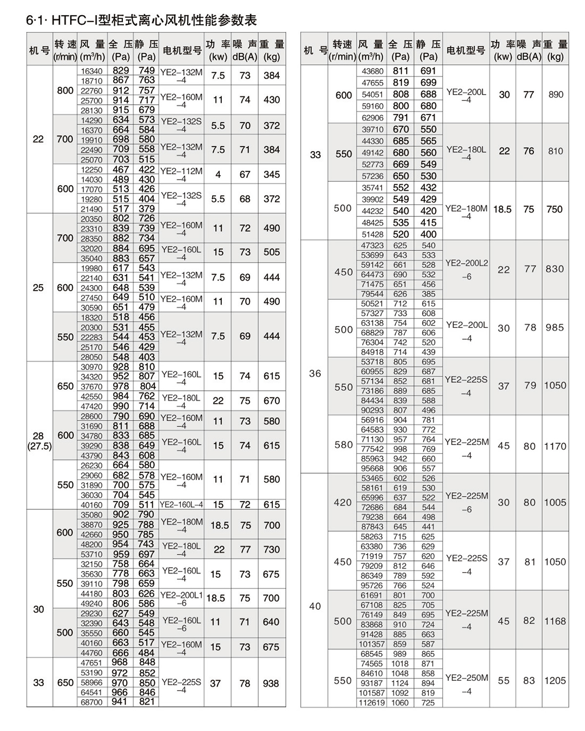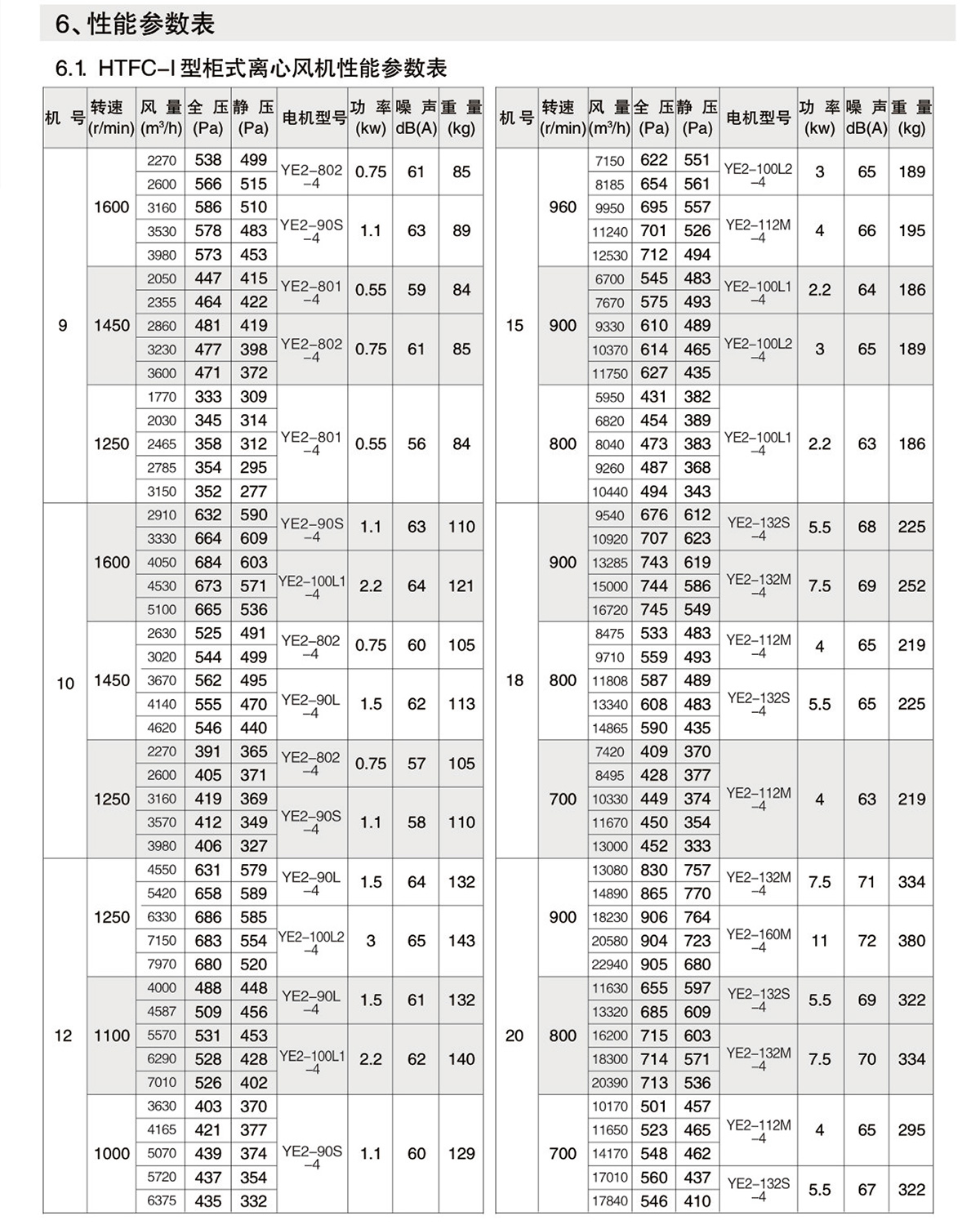 1.2.風(fēng)機(jī)按機(jī)號(hào)分為9-40十三種規(guī)格系列風(fēng)量范圍從1650~112600m3/h,全壓范圍從180~1200Pa。HTFC型柜式離心風(fēng)機(jī)經(jīng)不斷的改進(jìn)和開(kāi)發(fā),現(xiàn)可分為Ⅰ、Ⅱ、Ⅲ、Ⅳ